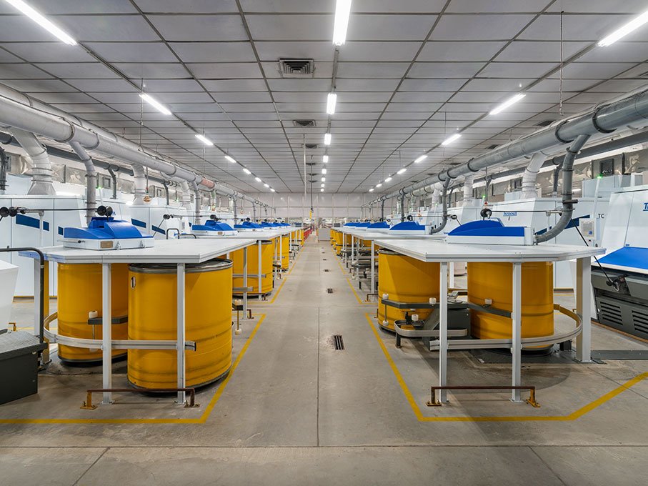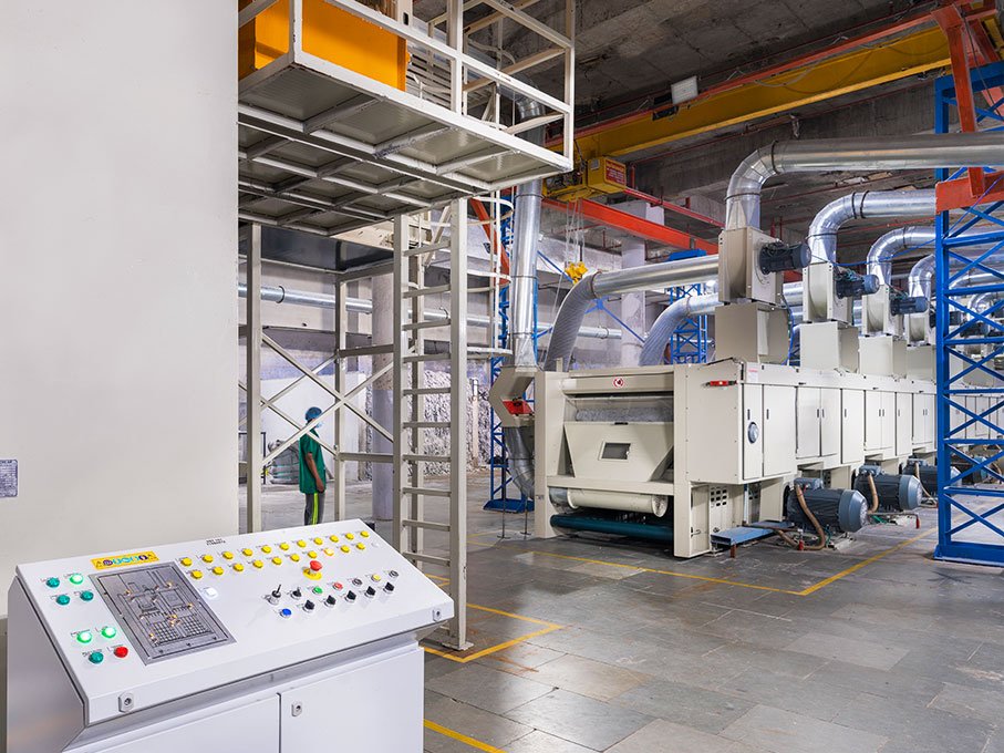 De productiefaciliteiten voor gerecycled textiel van Usha Yarn beslaan een terrein van 25 hectare in Derbassi. Onze productiefabrieken zijn uitgerust met de modernste spinmachines van Rieter, Truetzschler, Oerlikon en Schlafhorst, die gebruikmaken van geavanceerde textielrecyclingtechnologie.